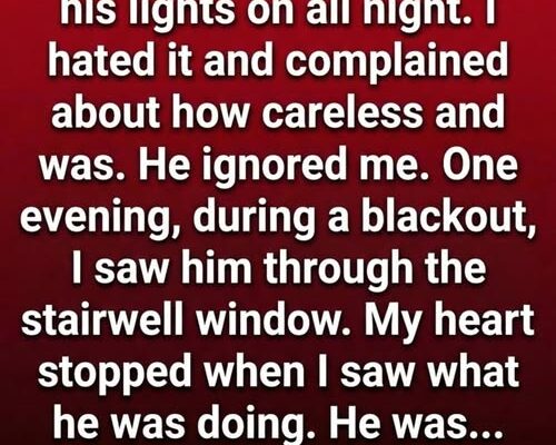 I complained more than once—politely at first, then with sharper words. Electricity wasn’t free. Darkness was normal. Why did he need his apartment blazing until dawn?